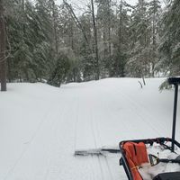 Cleaned up skate lane Saturday morning. Snow conditions are too soft to set new classic tracks.