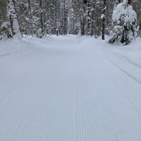 The groomer was out early this morning -- the Pinder system, 2k Lighted and the Crystal system (minus the Hiawatha loop) were ginzu groomed for both classic and skate.