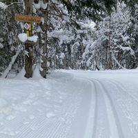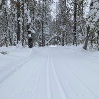 Mabel is a dog friendly trail for skiers, fat bikes and snowshoes. This section of trail winds through the backcountry bush up until the start of the creek at which point you return the same way you came. This is the first part of a few in opening the entire trail. Enjoy your ski and don't forget to look at the smile on your dog's face.