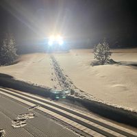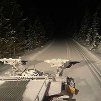 Right after yesterdays report of no snow we pulled out of the shop and the snow and wind started, we rolled a bunch yesterday and will be continuing to roll trails to collect as much snow as possible since the wind will be blowing and we need everything we can get.