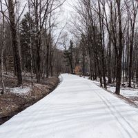 Today's pic was taken yesterday Tuesday on Sugar Road to provide some evidence that we are still skiing and still have a good amount of snow on our few open trails.